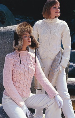 Zwei Zopfpulli, einmal in zartrosa, einmal in leuchtendem weiß. Gestrickt aus Cara, einem softigem, leicht versponnenem und deshalb besonders anschmiegsamem Dochtgarn. Bei Cotton fields in 16 Farben vorrätig.
